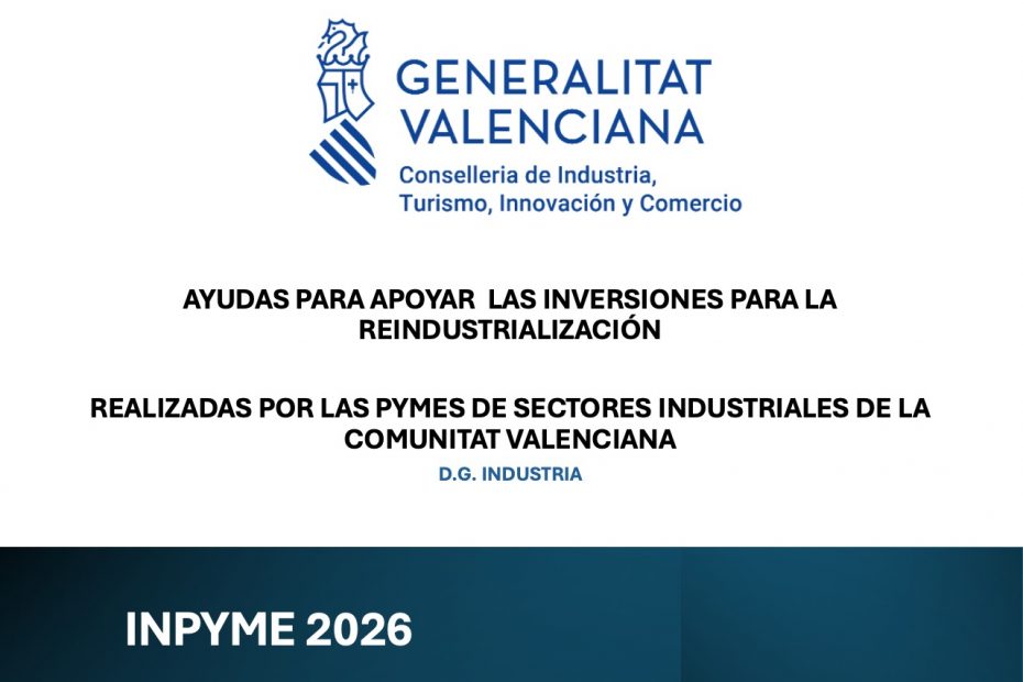 QLa Generalitat Valenciana ha publicado oficialmente la convocatoria INPYME 2026, una de las principales líneas de apoyo a la inversión industrial dirigidas a pymes de la Comunitat Valenciana.
